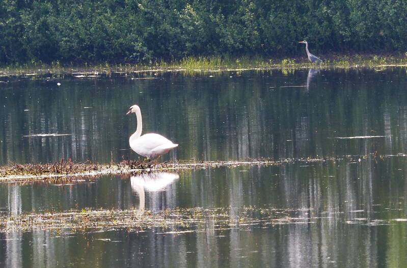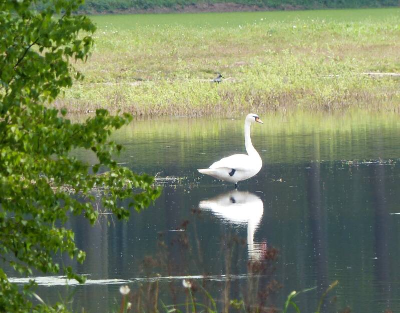 Een paar kilometer voor Eibergen nog een grote vijver. Zwanen, ganzen, reigers en vlinders zijn volop aanwezig in dit gebied.