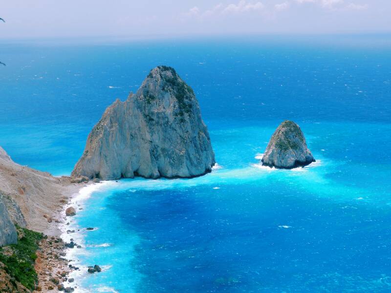 De zuidwestelijke punt van Zakynthos is verrassend rustig, ondanks dat je hier ook nog deels aan de populaire baai van Laganas (zie #1) zit. Het is een prachtig gebied met kalksteenkliffen, azuurblauwe zee, zicht op het schildpaddeneiland Marathonissi, dennenbossen en olijfboomgaarden.