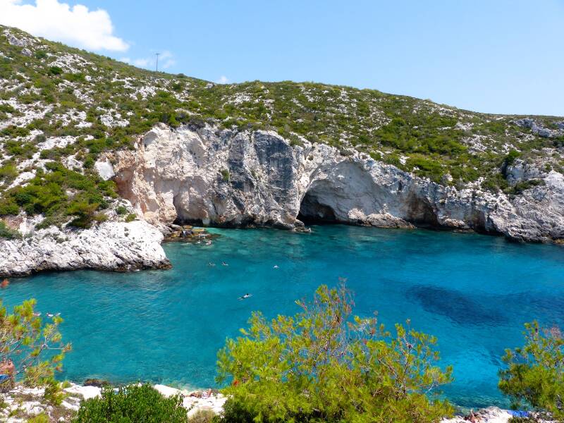Limnionas is één van de prachtige baaien aan de westkust van Zakynthos. Het ligt verscholen tussen de steile rotsen van deze moeilijk te bereiken kustlijn van het Griekse eiland. Het wordt in Zakynthos ook wel Limnionas beach genoemd, maar van een echt (zand)strand is geen sprake. Hoewel aan het uiteinde van de baai wel een klein kiezelstrand ligt. Deze baai is erg populair . Dus vroeg gaan als je deze baai wilt bezoeken. Overigens de zee in- en uitkomen is niet zo makkelijk en daarbij is het overal in de baai direct al vrij diep.