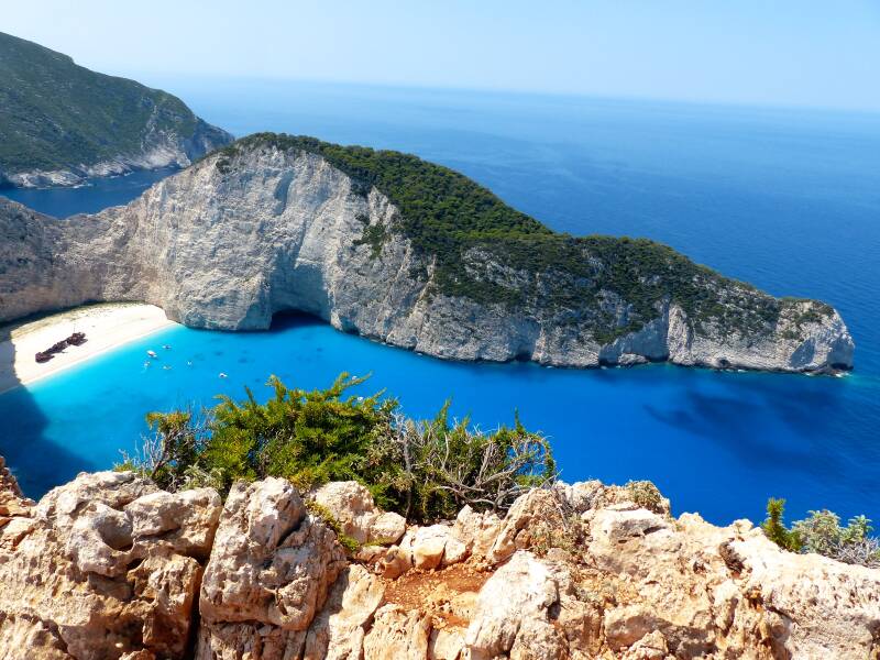 Het scheepswrak is een van de meest gefotografeerde locaties (Navagio Beach), niet alleen van het eiland Zakynthos, maar van heel Griekenland. De combinatie van de witte steile rotsen, het felle turquoise water en de gestrande boot op het witte strand zijn simpelweg indrukwekkend.