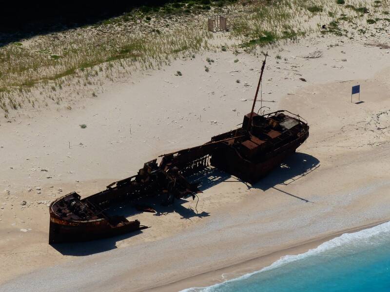Het scheepswrak ligt eveneens in het noorden van Zakynthos en is een 'buurman' van de blauwe grotten.