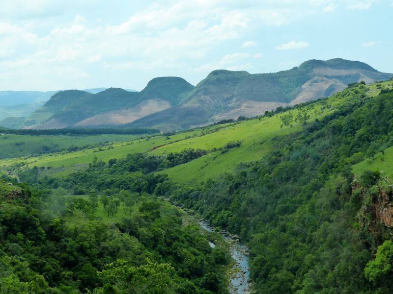 Dat de Panorama Route spectaculair mooi is, bewijst onderstaande foto. Deze foto is vanuit de auto gemaakt op de R532 . Een groene route, bergen met planten, waar watervallen in smaragdgroene meren storten en rivierkloven door weelderige valleien kronkelen.